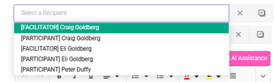NOTE: All participant replies are logged in the timeline and are visible to the Facilitator. Replies to facilitators are routed to the relevant facilitator inbox. |